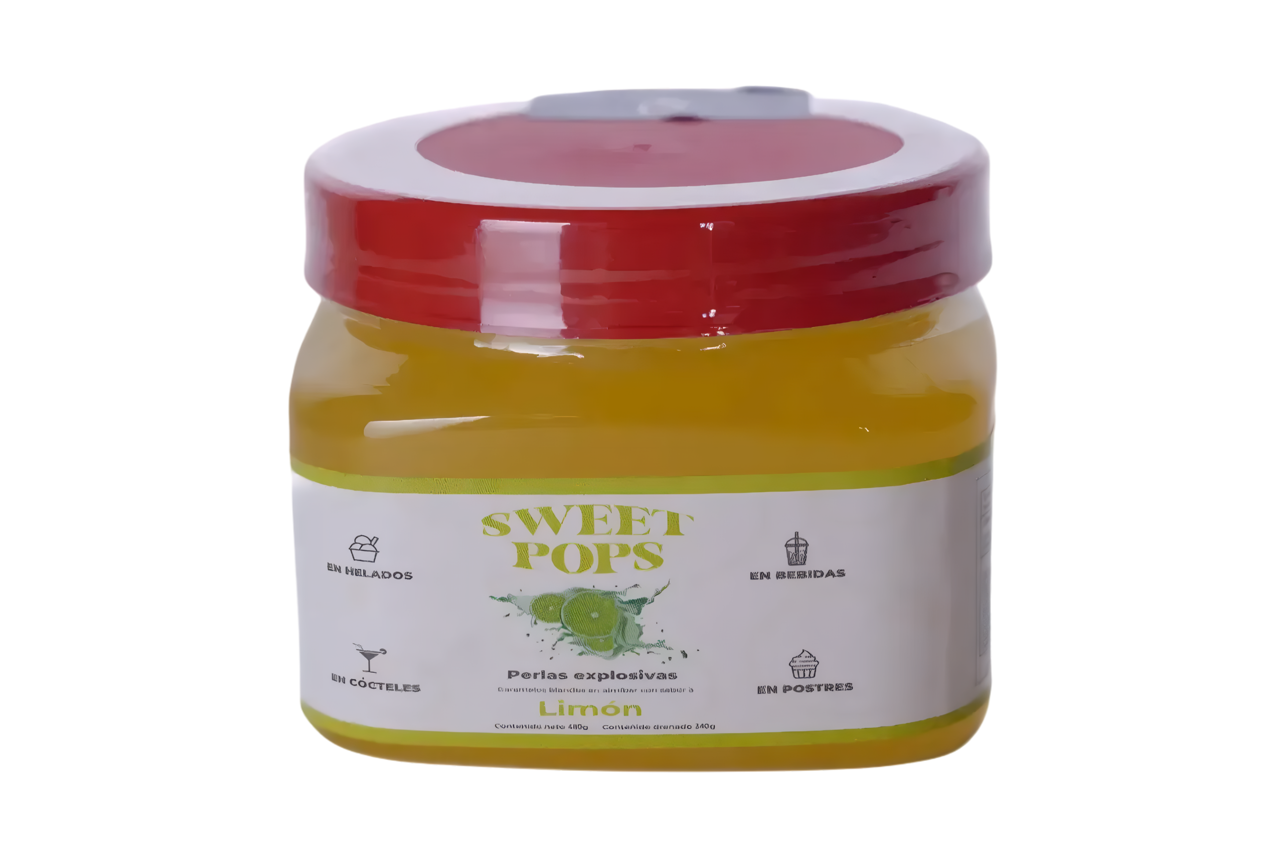 Las Perlas Explosivas Sweet Pops sabor limón aportan acidez refrescante y un toque cítrico ideal para bebidas frías, mocktails y cócteles.