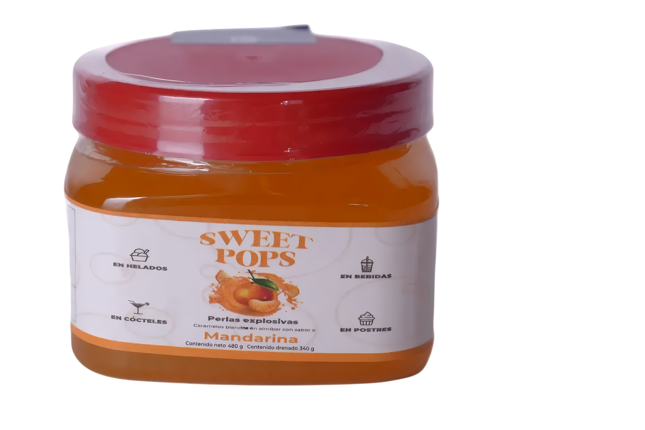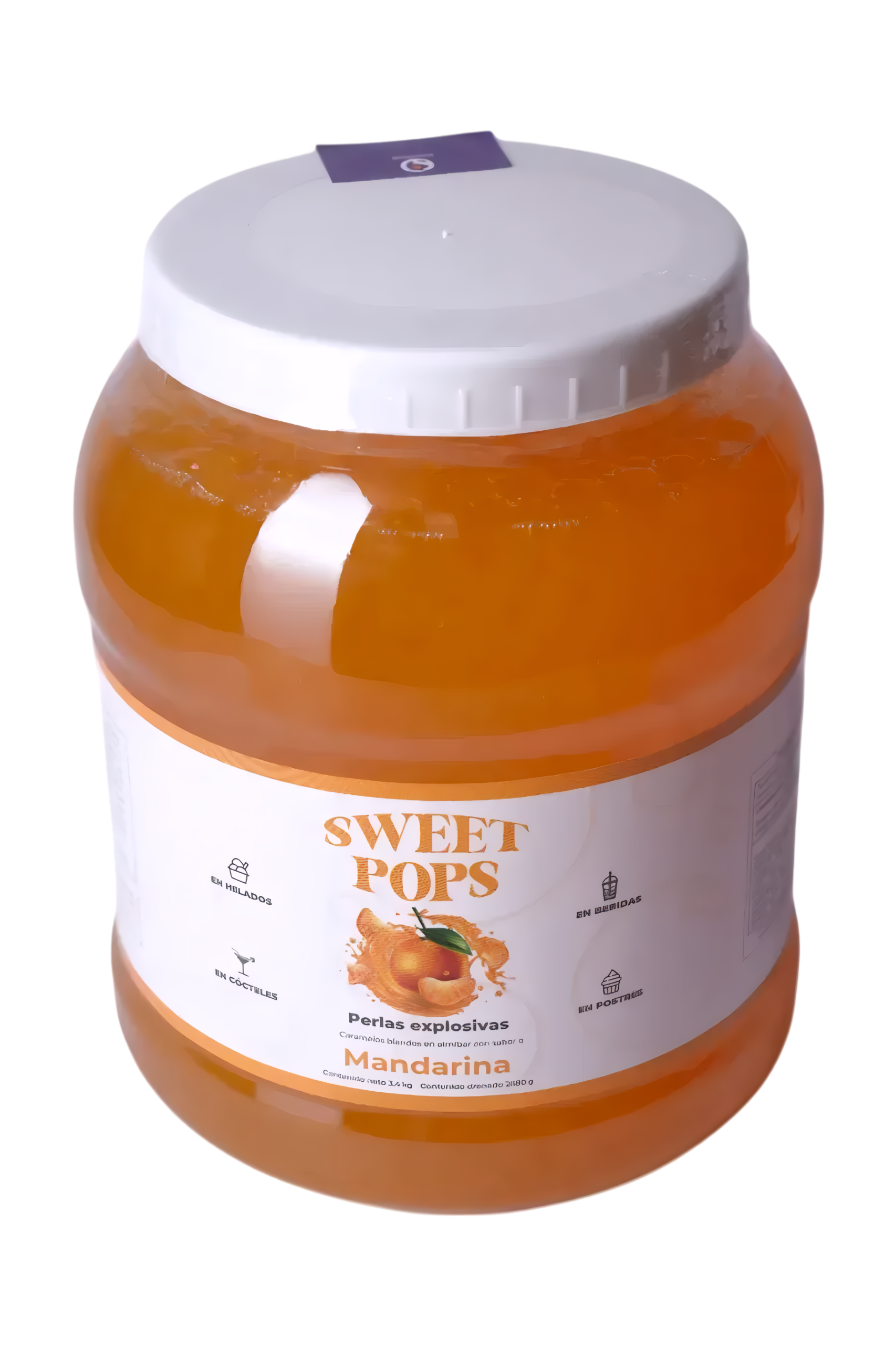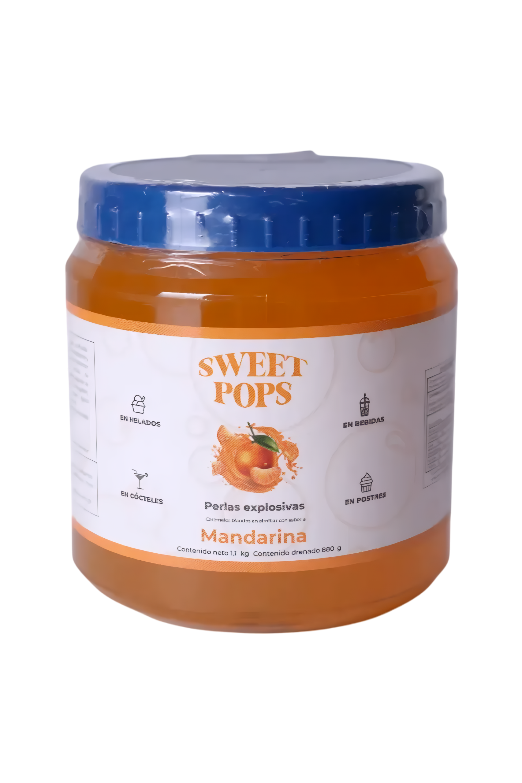 Las Perlas Explosivas Sweet Pops sabor mandarina destacan por su frescura cítrica y su vibrante color. Perfectas para bebidas tropicales y postres.
