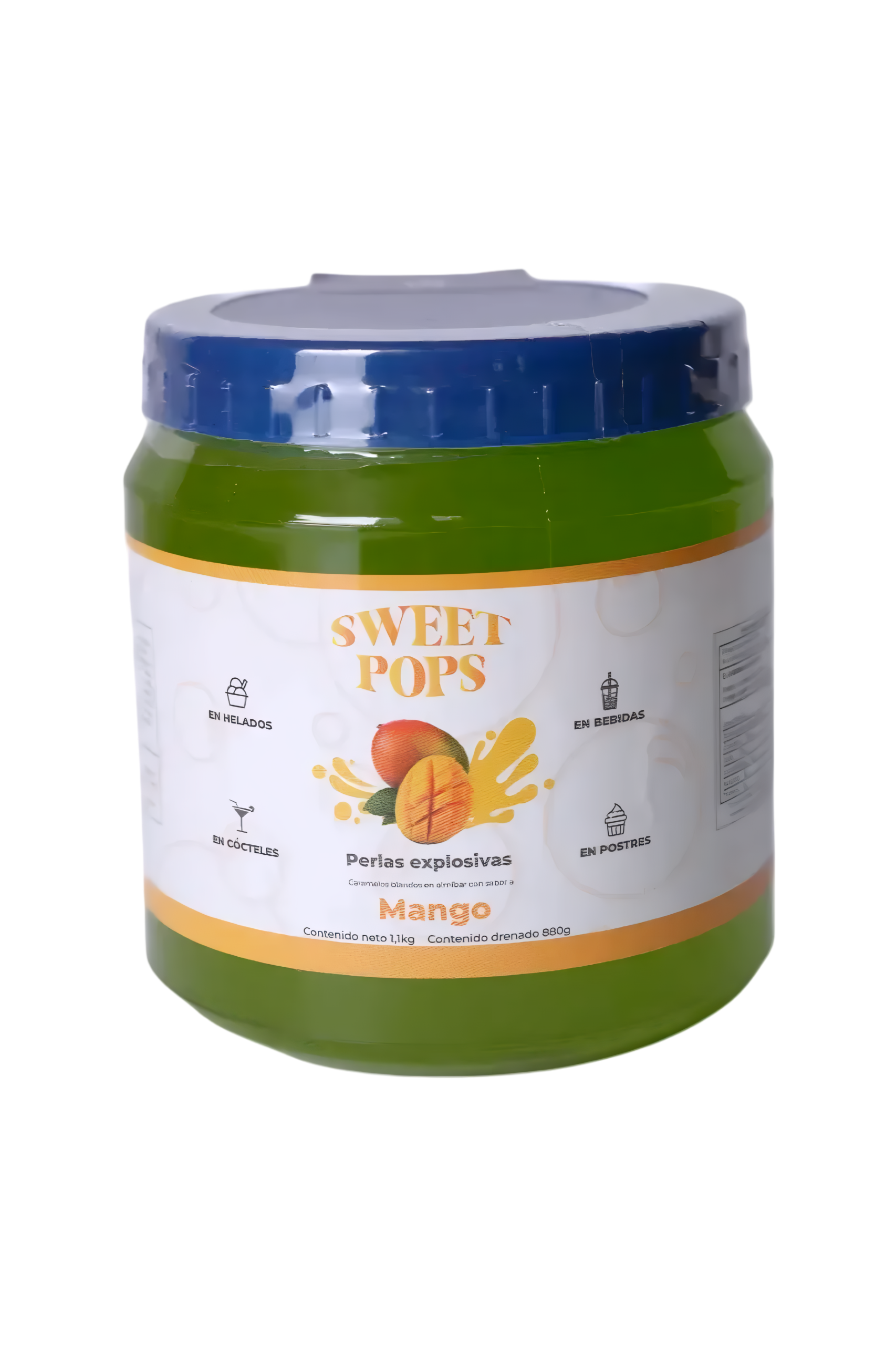 Las Perlas Explosivas Sweet Pops sabor mango ofrecen un perfil tropical intenso que eleva bebidas y postres con un toque exótico.