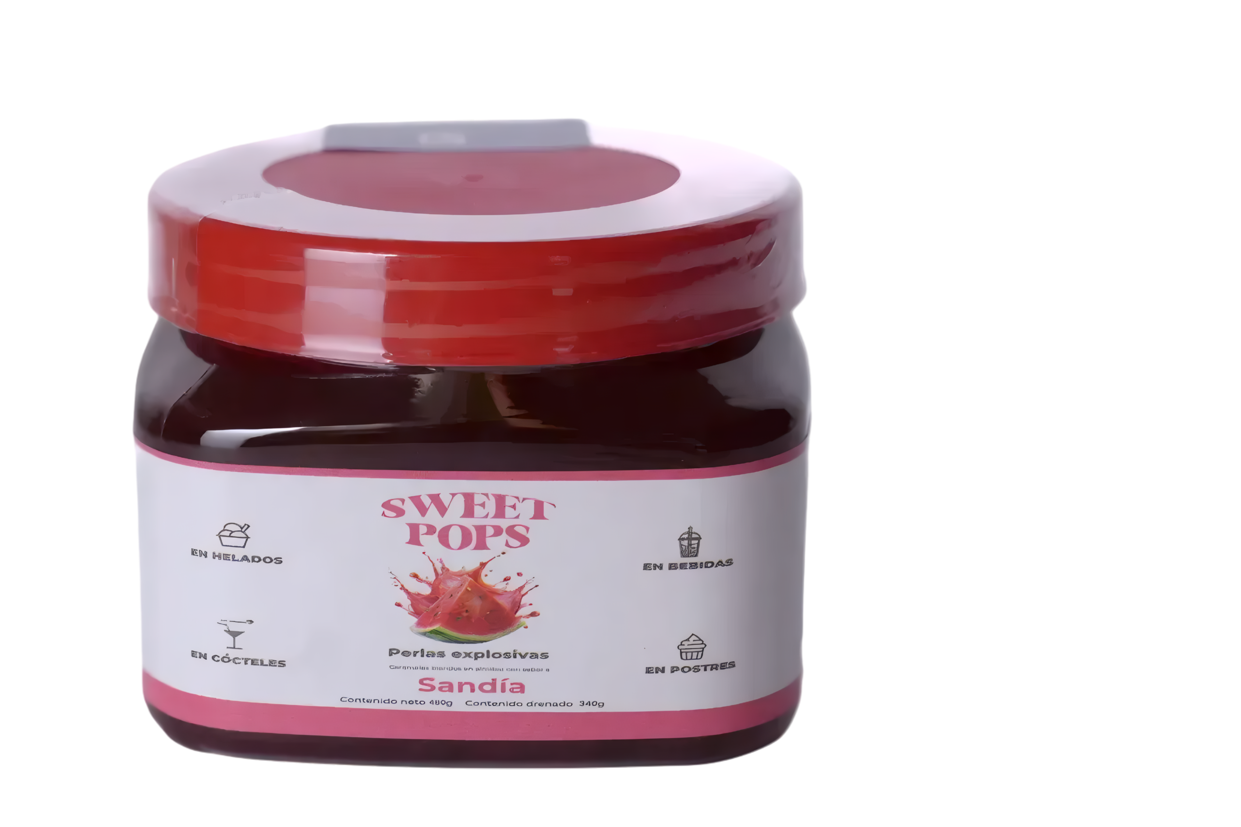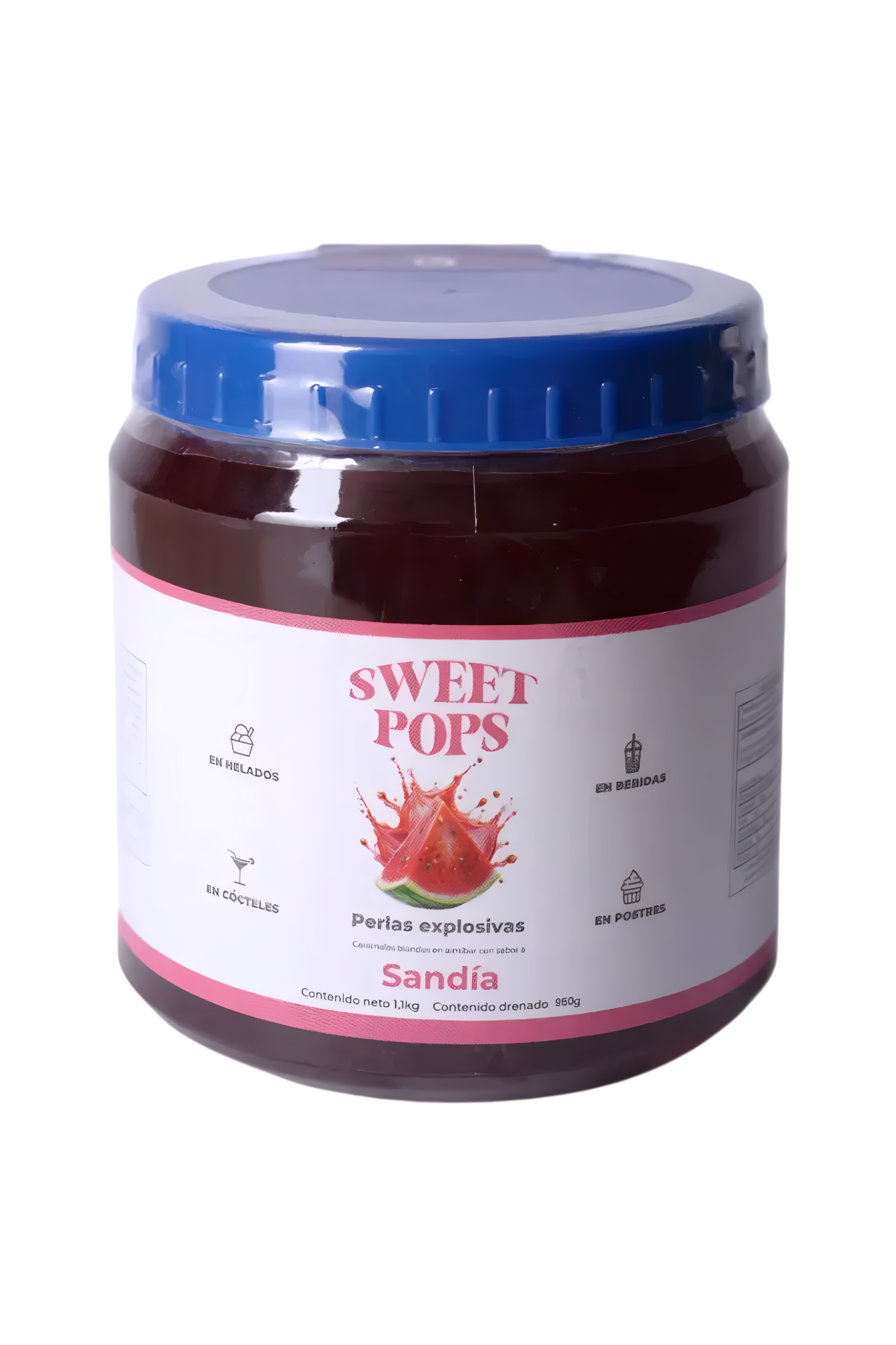 Las Perlas Explosivas Sweet Pops sabor sandía ofrecen frescura, color y dulzura perfecta para bebidas veraniegas y postres.